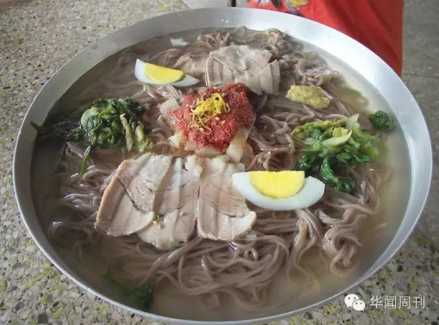 吃的和韩国一样,泡菜之类的,也有中国的一些特色,比如有些烤肉和韩国的有一定区别。更像是中式烤肉。