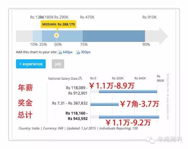 作为新兴市场之一,印度记者的收入总体来说不算高,而且差距巨大。根据职业评价网站payscals在今年7月1日发布的数据,印度记者的最低年薪为118089卢比(约1.1万人民币),最高年薪高达912901卢比(约8.9万人民币),加上各种奖金,一年到头赚的最多的记者有943592卢比(约9.2万人民币),几乎是收入最少记者的9倍。