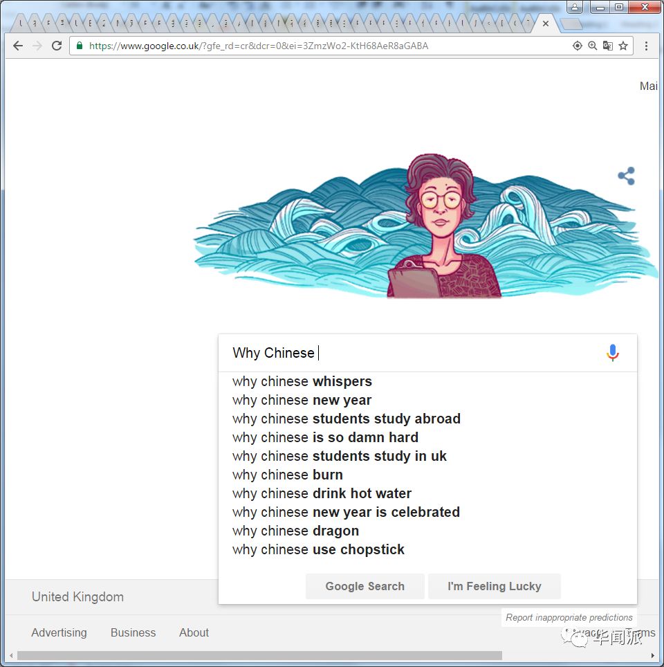 而输入“中国人/中国的/中文”出现的关键词有,“为什么学中文那么难?”“为什么中国人在英国留学?”“为什么中国人喝热水”“为什么中国人用筷子”……