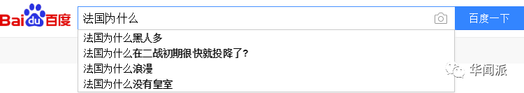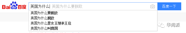 这些关键词是如何揉合出来的呢?靠的是百度——中国最大的搜索引擎。只要打出相关国家名字,就会根据大家的浏览量自动弹出该国家最受关注的问题,从而得知国人对这个国家最主要的印象: