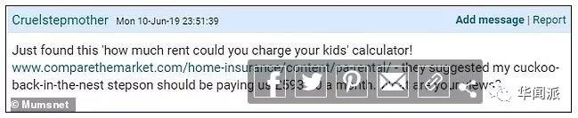 网友Cruelstepmother:刚刚发现这个“你能给你的孩子算多少房租”的计算器!他们建议我的继子应该向我每月支付593.8英镑。你们怎么看?