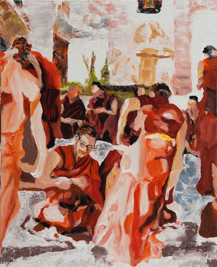 在工作的僧侣,布面油画,2019,600 x 800mm