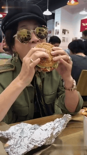 现在的嘉玲姐沉迷艺术收藏和抖音,前几天还在抖音视频里介绍自己心中“全香港最好吃的汉堡”;女神在超大份的汉堡面前,原来也像普通人一样。