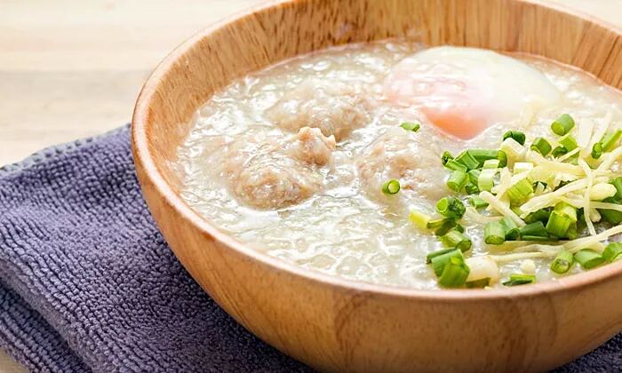 另一种是粒粒分明的泰式稀饭,口感比猪肉粥更强烈,因为通常会加入各种鸡肉、鱼肉、鱿鱼、鲜虾等,让味道更有层次;尤其鱼肉搭配豆豉酱,绝对是人间美味!