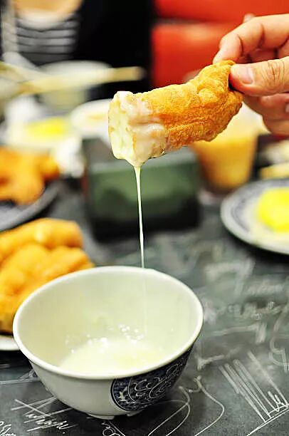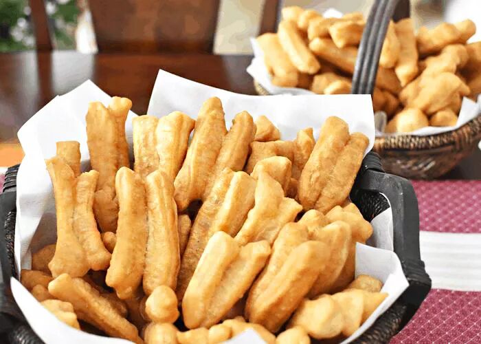 例如清迈当地有名的“泰式油条”Patongo (ปาท่องโก๋),做法和口感与中式不同,短短胖胖的,味道偏咸。当地人会将Patongo搭配豆浆或炼乳一起吃,甚至沾各式各样的酱,如芝麻酱、甜酱等等。