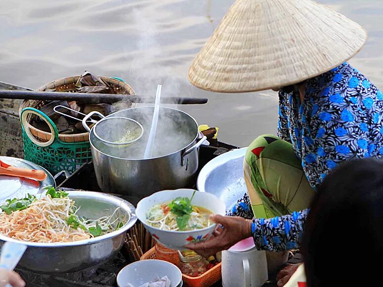 越南人在一日尚未炎热的清晨里,常常来一大碗,吃完后便精神饱满地去工作。