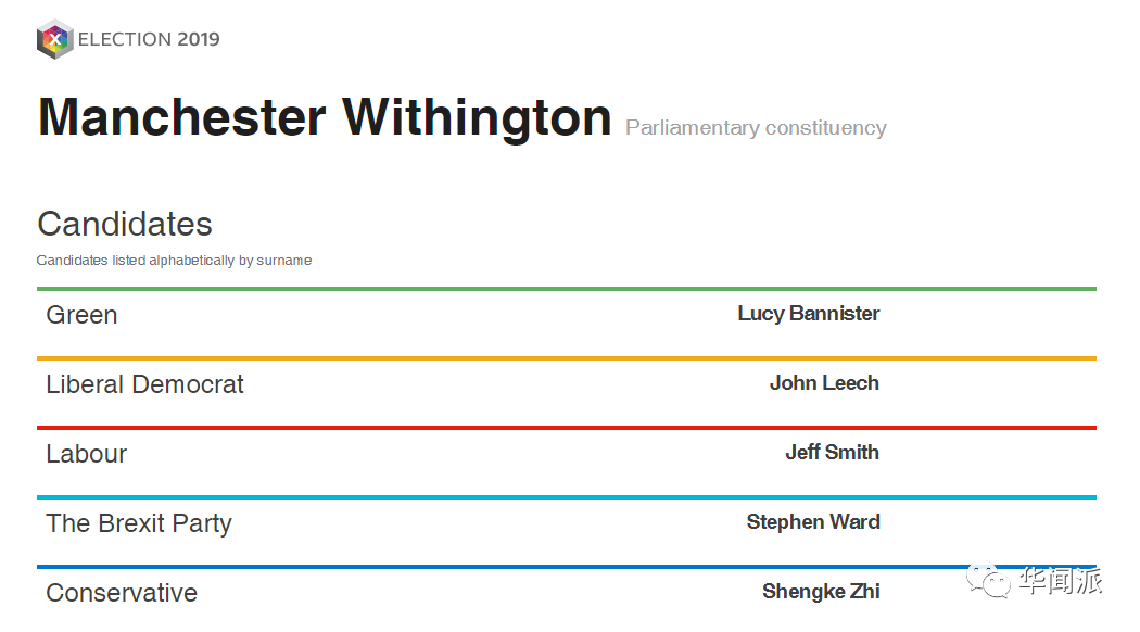 代表保守党的下议院议员候选人智升科(Shengke Zhi)所在的选区是曼彻斯特威辛顿(Manchester Withington)。